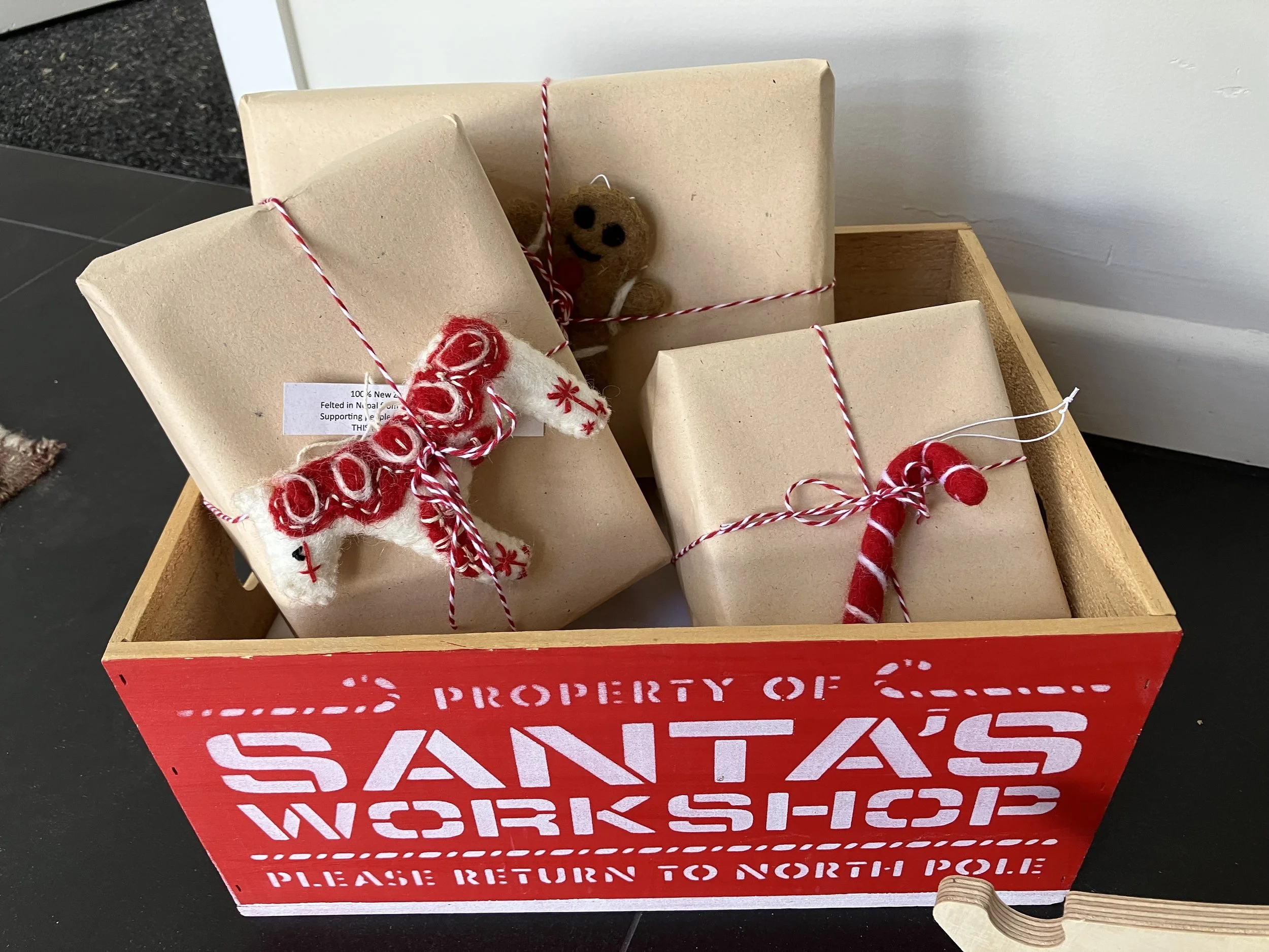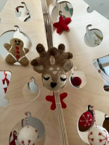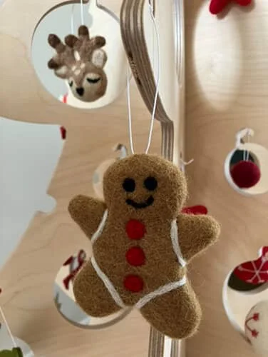 The New Zealand wool felt decorations are crafted in Nepal by women working in secure employment, receiving fair compensation.